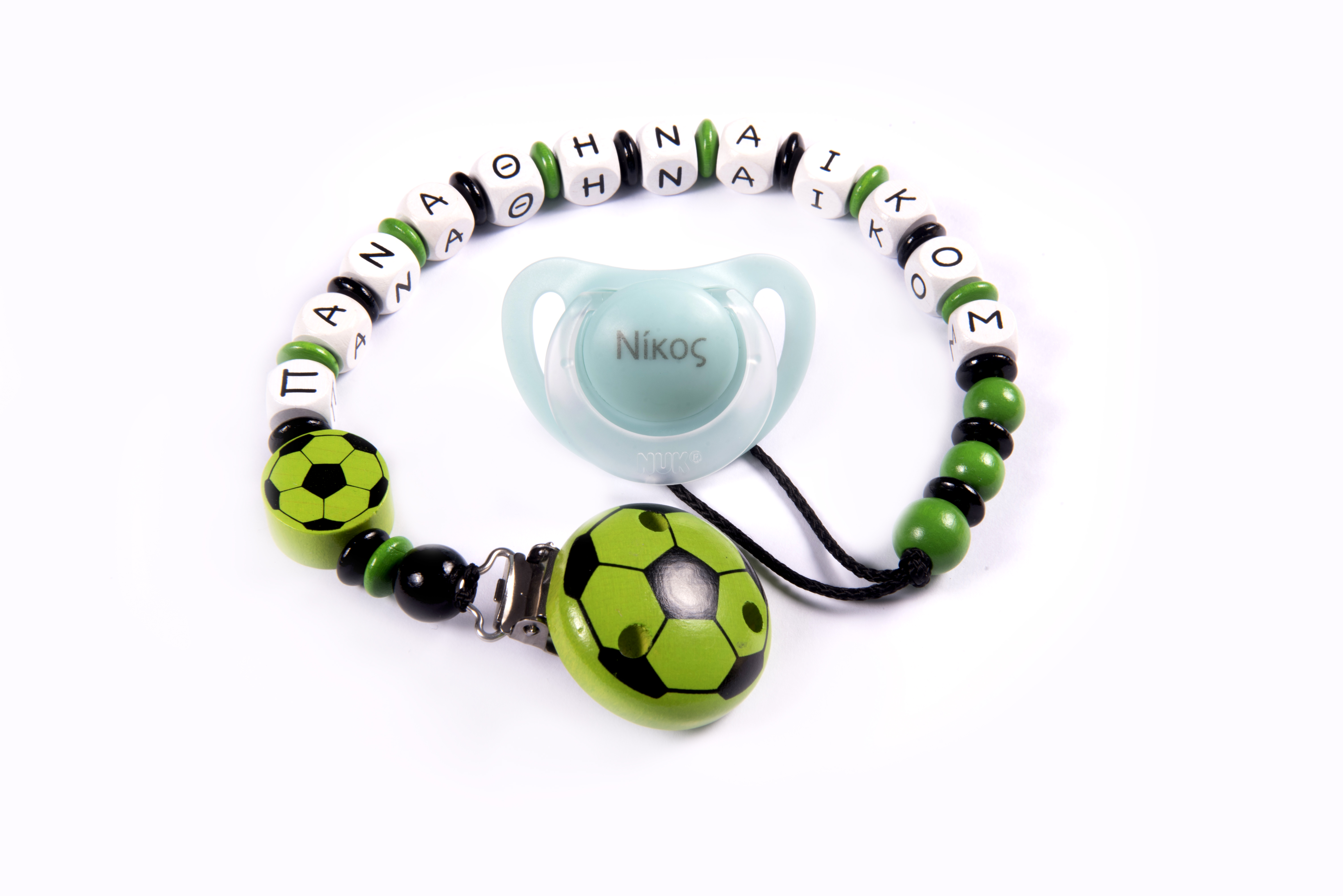 Πιάστρα Πιπίλας ΠΑΝΑΘΗΝΑΪΚΟΣ με ξύλινα χαντράκια και γράμματα.