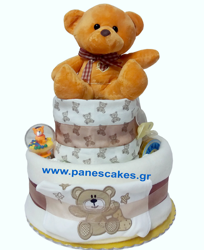 Diaper Cake Μπεζ Αρκουδάκι. Δώρο για Νεογέννητο. Δώρο για Μαιευτήριο. Δώρο για Βάφτιση.